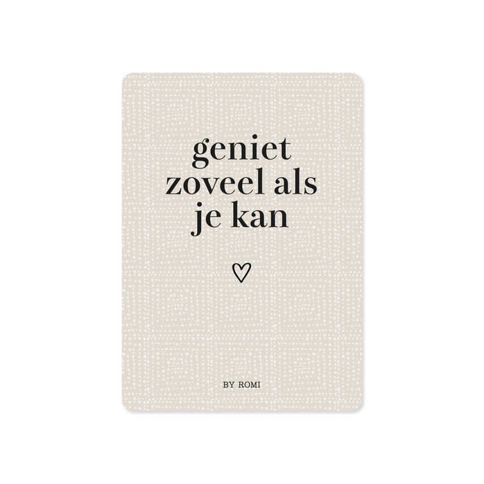 Deze wenskaart van By Romi is voorzien van afgeronde hoeken en wordt geleverd inclusief witte envelop.