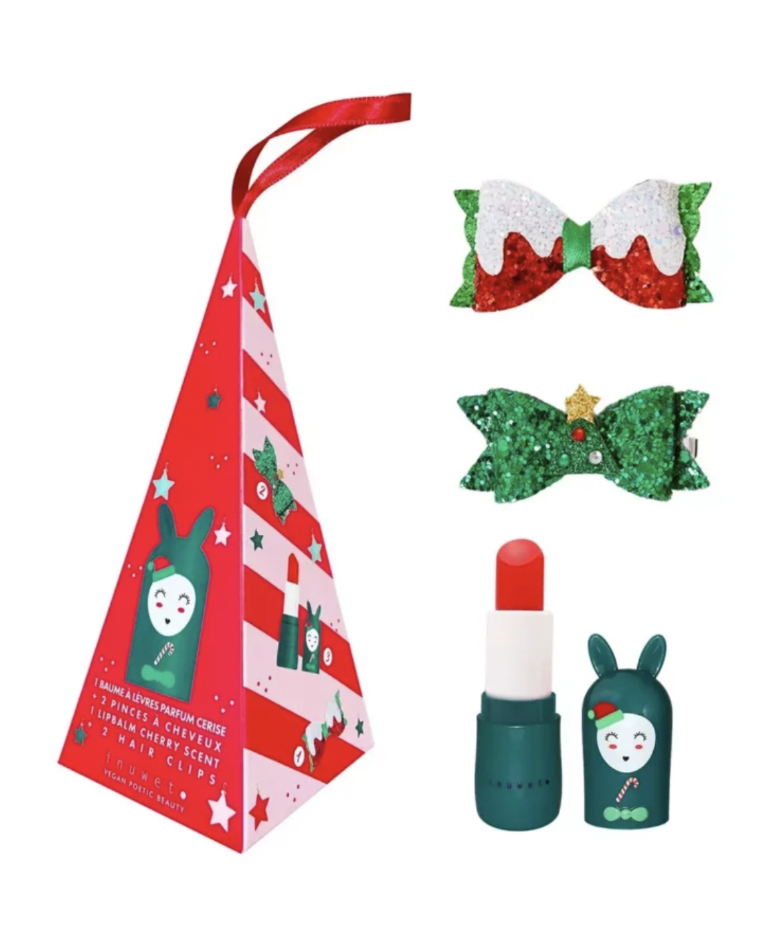 Ho ho ho... ontdek deze leuke set met een kersen lippenbalsem en 2 kerst haarspeldjes, special edition voor Kerst. Ready to go...?! Vanaf 3 jaar. Dermatologisch getest.
