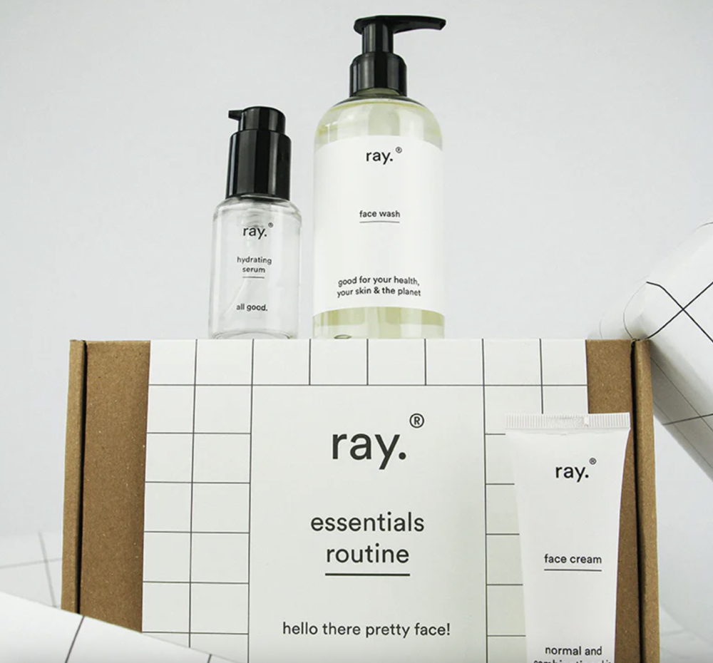 Deze giftset bevat de Ray Face Wash (250ml), het Ray Hydraterende Serum (50ml) en de Ray Dag- en Nachtcrème (50ml).