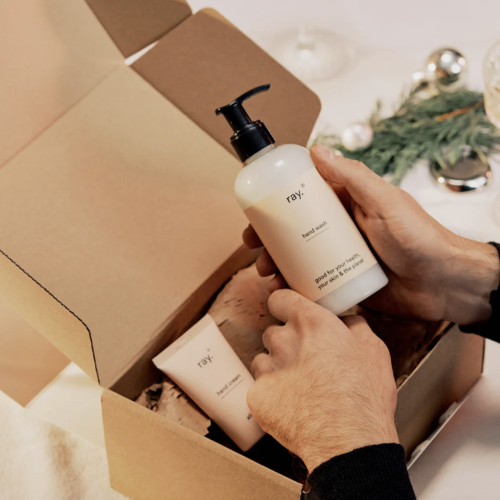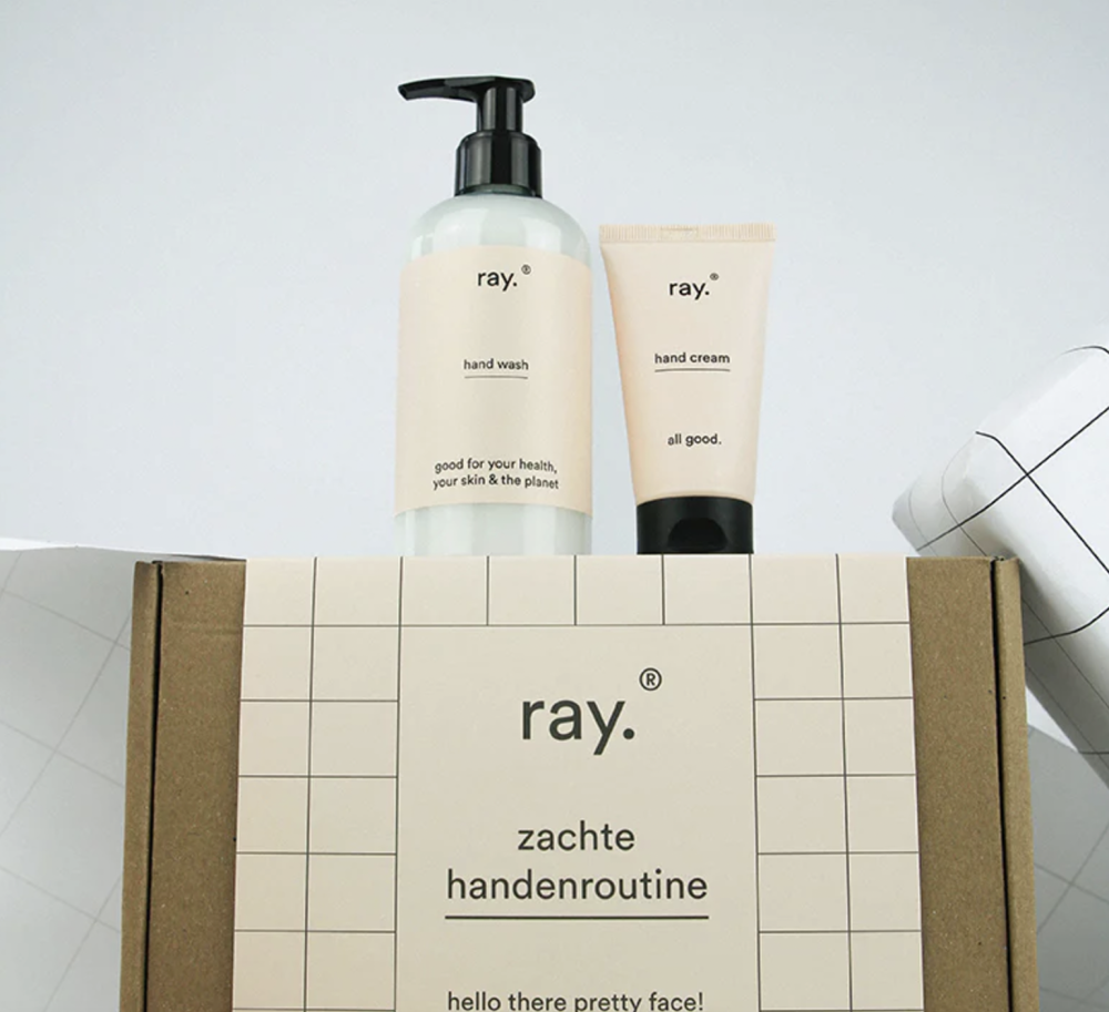 Deze gift set bevat de Ray Hand Wash (250ml) en de Ray Handcrème (50ml).