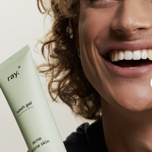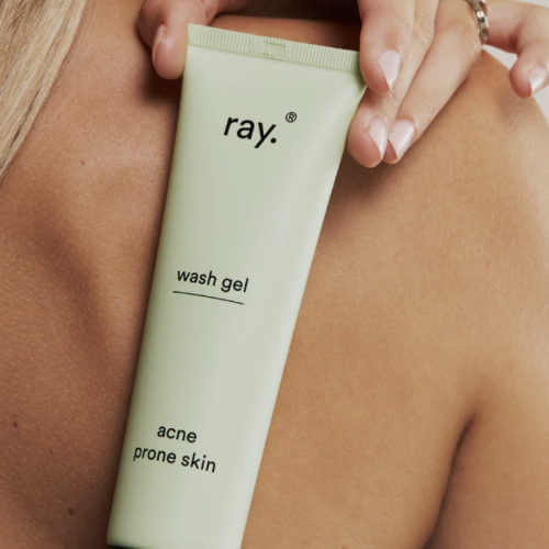 Reinig je gelaat grondig op milde wijze zonder uit te drogen met de wasgel voor een acnegevoelige huid van Ray.