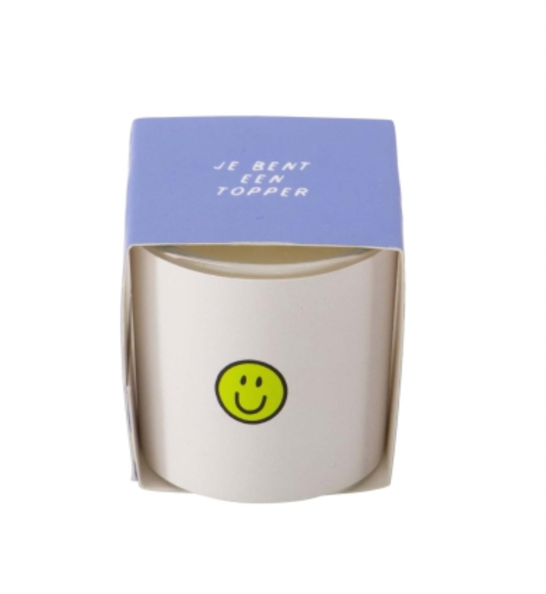 Een gezellig lichtpuntje tijdens donkere dagen: deze leuke geurkaars met vrolijk design. Ideaal als geschenkje voor je bestie, partner, mama, papa, zoon, dochter, jezelf... You name it? Spread some love ;)